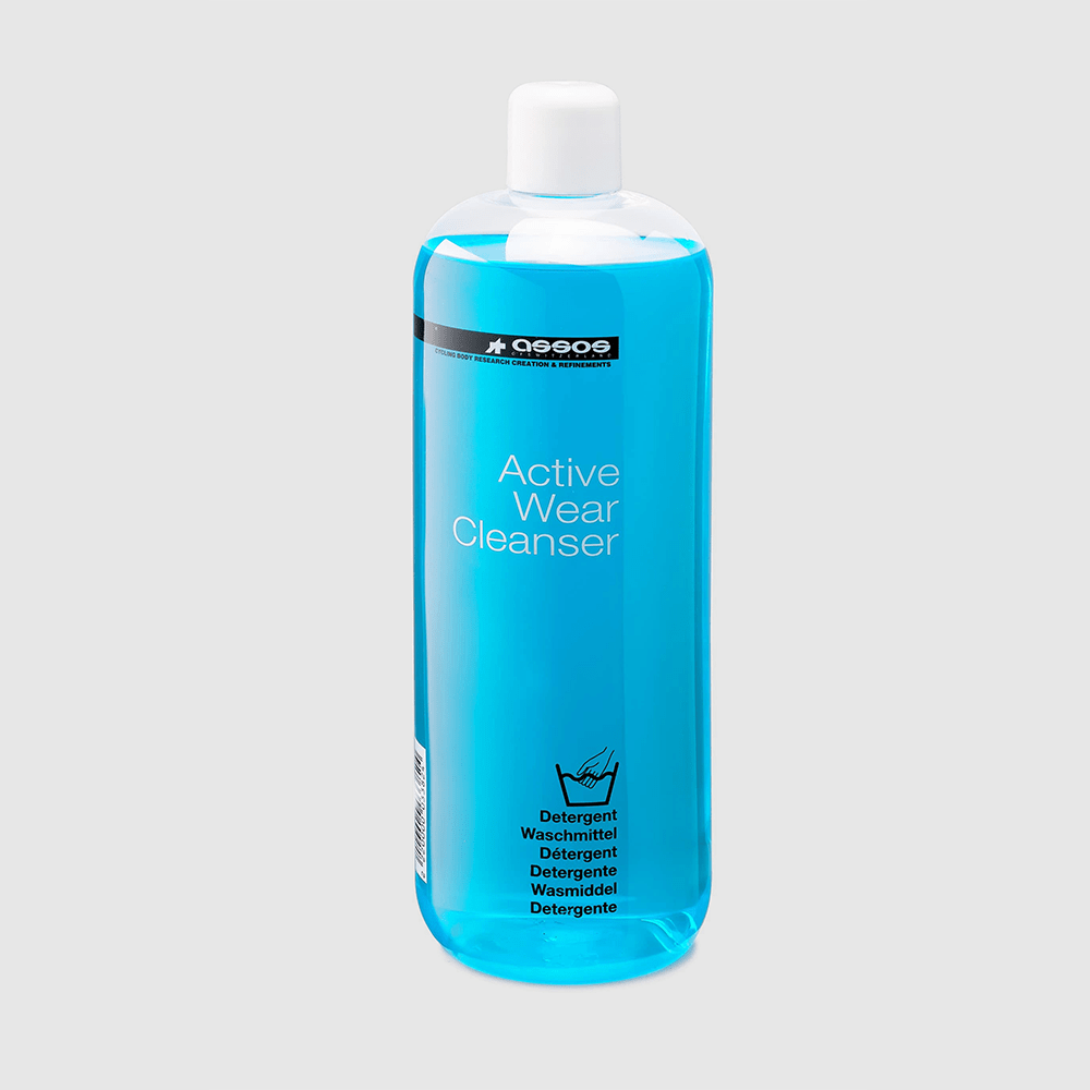 When laundering ASSOS clothing, we recommend traditional hand washing or gentle machine washing, using ASSOS Active Wear Cleanser. ASSOS Active Wear Cleanser is delicate on elastic fibers, pH neutral, neutralizes odors, enhances textile breathability and maintains sharp color sublimation.