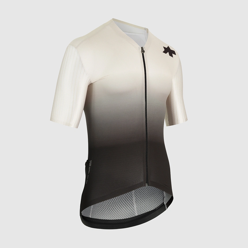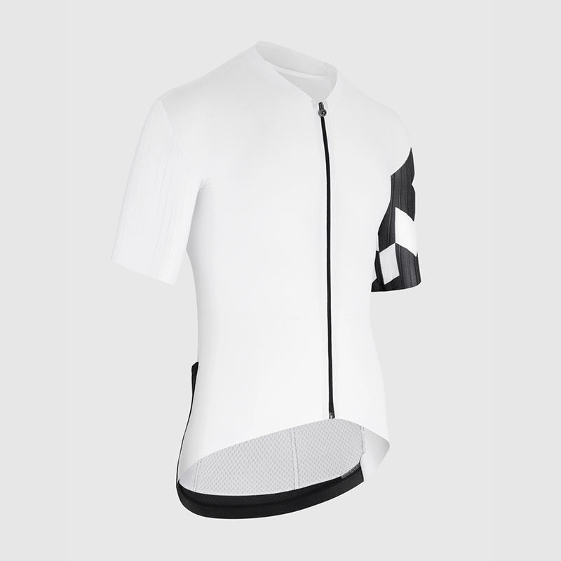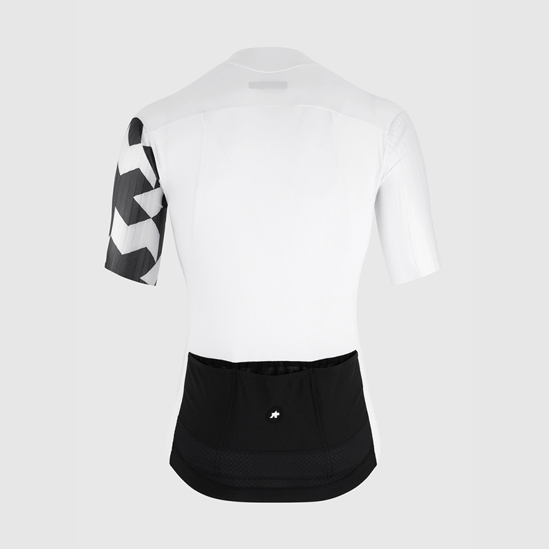 The open 3D knit miniCheck Tex provides high breathability, high elasticity, UPF 25, and the signature ASSOS jersey texture across the front. The pockets are anchored by a rear panel of Stabilizer V11, which provides hypercooling breathability and is so lightweight (UPF 15) that we recommend applying sunscreen beneath it. It also reinforces stability, preventing sag and movement when pockets are loaded. The sleeves feature the new 550CX warp-knit textile, which provides UPF 35 protection and a muscle-wrapping, bistretch fit with inherent aerodynamic properties.