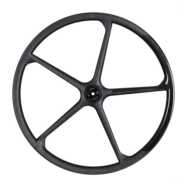 The Black Inc FIVE handcrafted solid-spoke carbon wheelset represents the epitome of Black Inc's engineering and design capabilities. Featuring a specially designed one-piece rim and spoke blade construction, the FIVEs is a lightweight wheelset that also offers aerodynamic advantages that typically only deep-profiled heavier wheels can approximate.