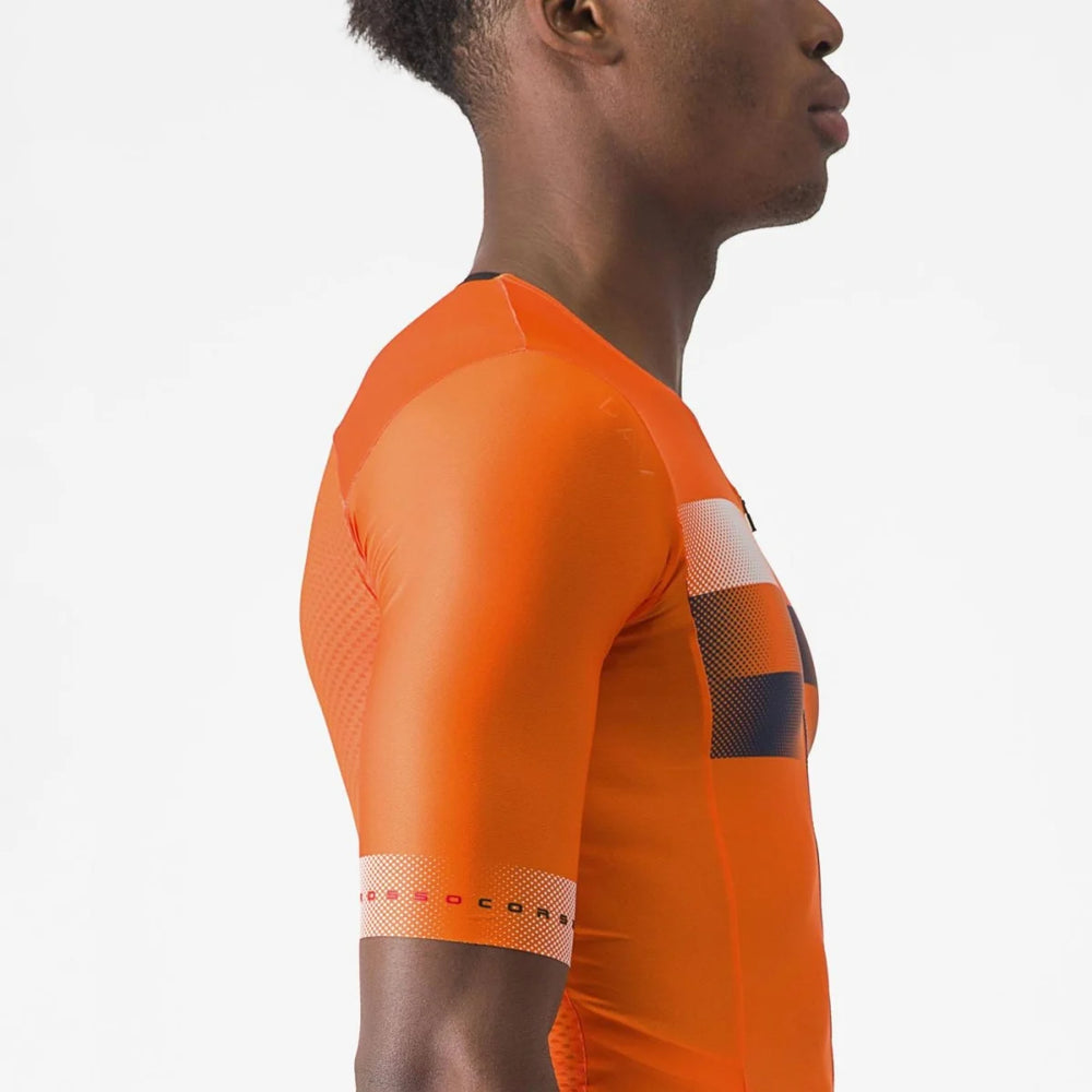- Elbow-length sleeves with raw-cut edges for maximum comfort and aerodynamics