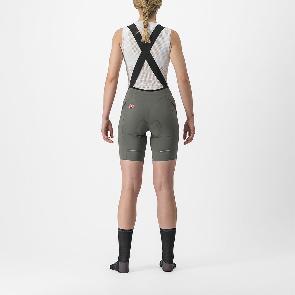This is our midrange performance short, great for a long ride or a quick hour workout indoors or out. Our Endurance Evolution fabric is a high-modulus, very matte Lycra® fabric that feels extremely dry while providing just the right amount of compression. At the leg ending, we use a raw-cut edge with vertical silicone strips to keep the leg in place without the pressure that creates the dreaded sausage effect. The bib straps are stretchy enough that you can pull the shorts down for a pee break without removing your jersey and bibs, while the floating construction allows you to cross the straps on the front or the back, whichever works better for you. A great short needs a great seat pad, and the women s-specific KISS Air2 Donna pad will keep you comfortable without being too bulky.