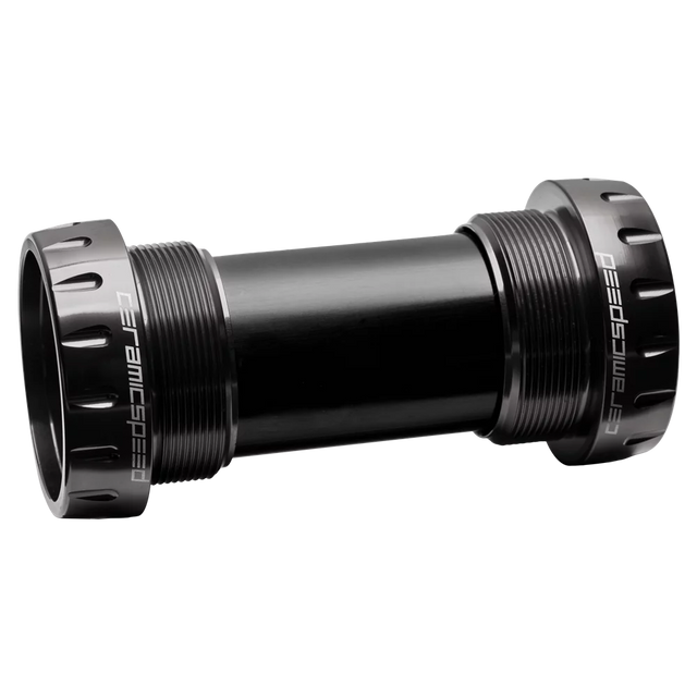 CeramicSpeed bearings are pressed onto the spindle and then installed into the cups. Those bearings comprise either Standard or Coated Bearings. Super round, super smooth CeramicSpeed balls rotate in hardened-steel races in both. The Coated version has a metallic coating laid onto the races, making them even harder and smoother, resulting in longer life and lower drag.
