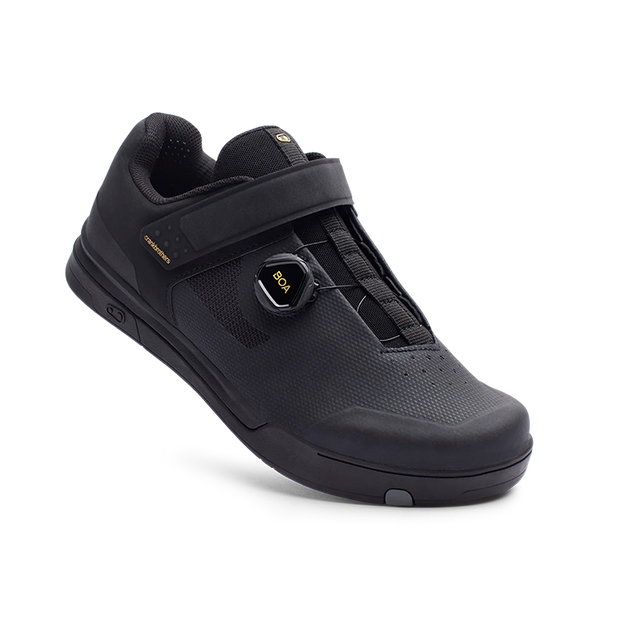 The ramped cleat box offers easy front and rear pedal entry and mud shedding. A Race Zone setback on the cleat track allows the cleat to be positioned further toward the heel for added control and stability when descending.