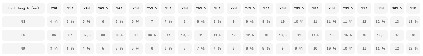 - Sizes: 36-48 (37 to 47 also in half sizes)