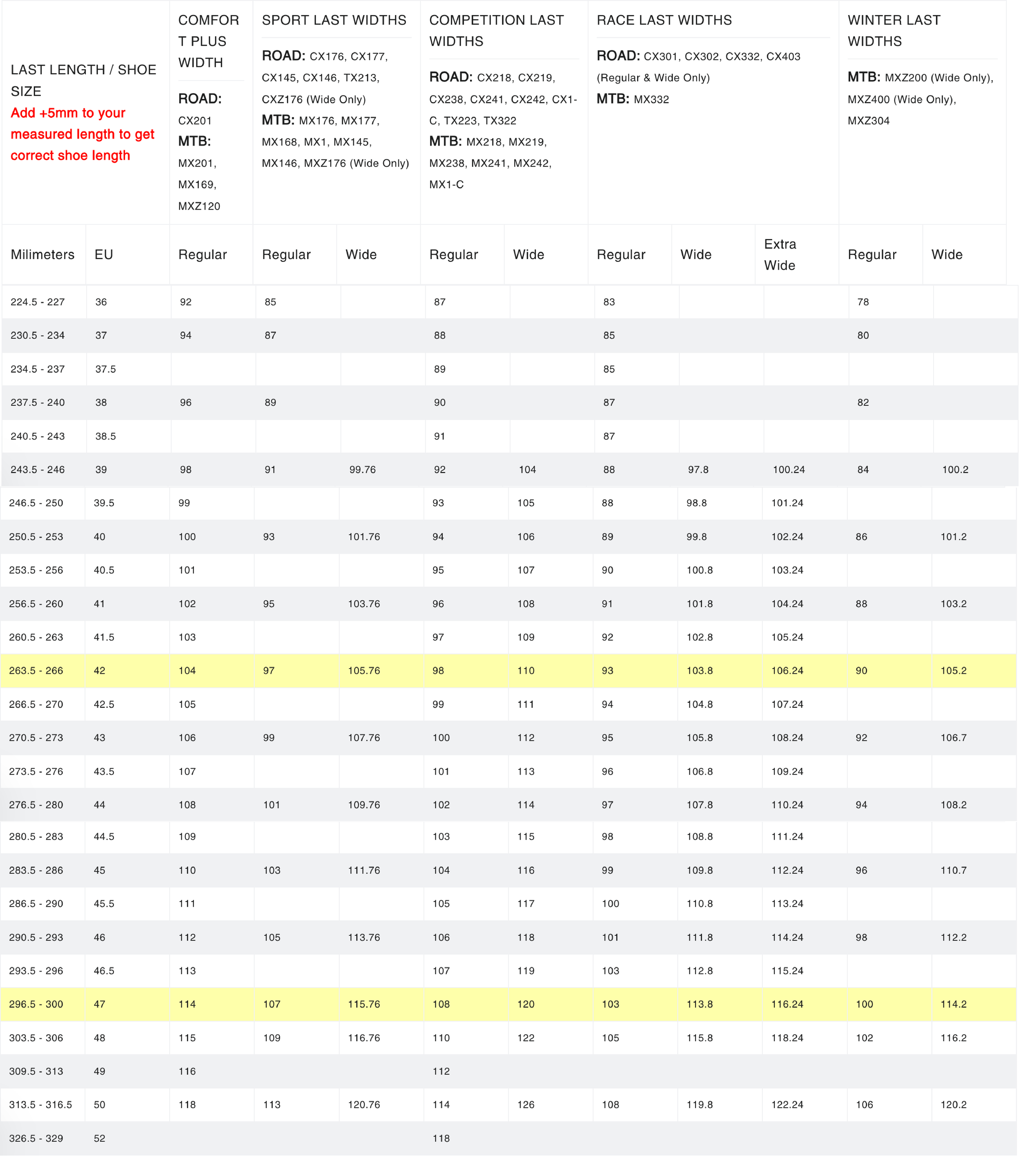 - Last - CX Comfort Plus Last – The Comfort Plus last has the most generous forefoot platform of all of our CX lasts. This last will accommodate a multitude of foot shapes and allow for toe splaying. Made for those riders who struggle to find an unrestricted shoe for the shape of their feet.