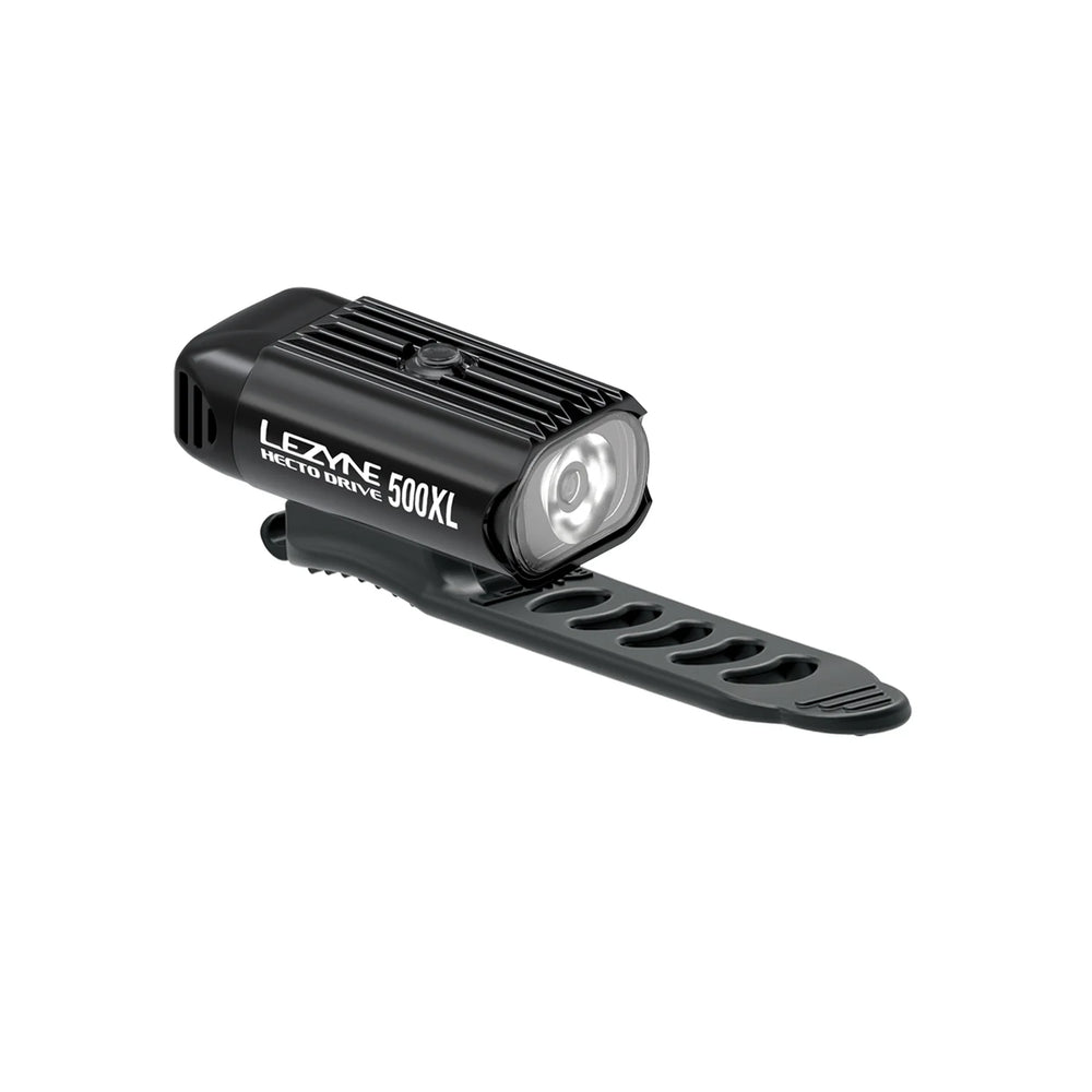 FRONT: The Hecto Drive 500XL is a compact, durable cycling light with a machined aluminum body with built-in cooling fins and cutouts for side visibility. Its single LED design provides an impressive maximum output of 500 lumens and eight output modes, including a Daytime Flash mode. Offering up to 20 hours of total runtime, charging is simple with an integrated cable-free USB stick, and the light straps securely to a variety of handlebar shapes and sizes.