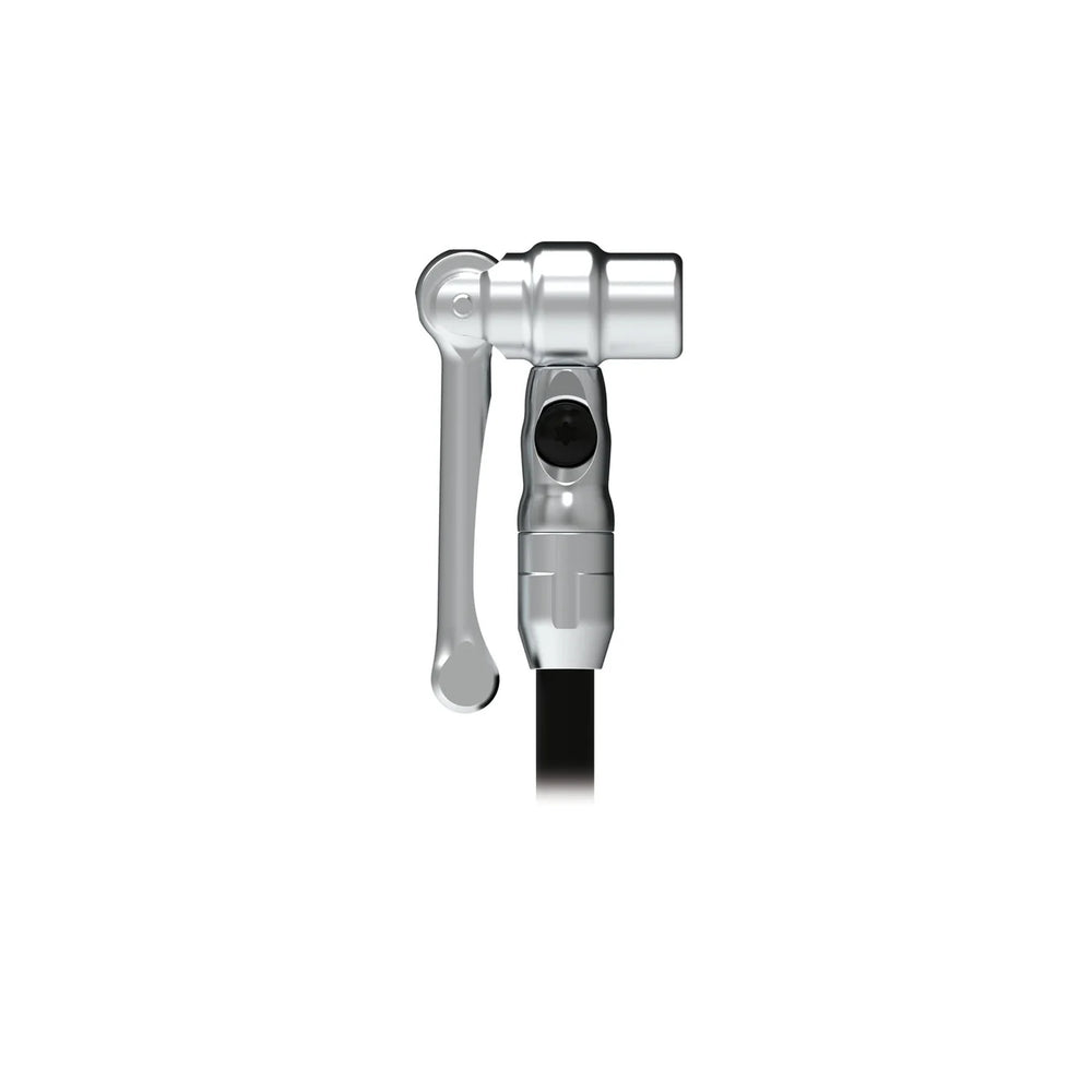 The Presta Pro Head is a premium, fully CNC-machined pump head designed to pair perfectly with Lezyne HP (high-pressure) and HV (high-volume) pumps. An easy-to-use, slip-on pump head designed for Presta-only applications - the ergonomic, slim, aluminum lever is actuated to securely lock the Presta Pro Head onto the valve for reliable high-airflow inflation. The innovative Valve Bleed System (VBS) engages the valve pin allowing for fine-tuning tire pressure- Simply push the VBS button to release air from the tire to achieve the desired pressure. Engineered using corrosion-resistant brass internals and a robust aluminum body with a gloss silver anodized finish. Read More
