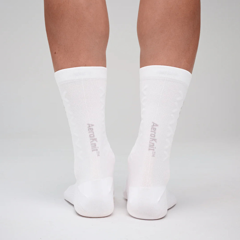 Fast, faster, fastest. The Aero Knit Sock uses smooth and textured knit zones to manipulate airflow, reducing drag and saving watts. Lightweight and breathable, it stays locked in for proven aero gains at race pace.