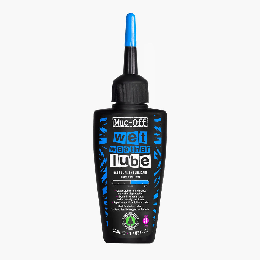 Muc-Off Wet Chain Lube is an ultra durable, long distance bicycle chain lubricant and oil that’s been specifically formulated to excel over long distances in wet or muddy conditions. Our state of the art formula has been derived from natural ingredients and made completely from renewable sources.