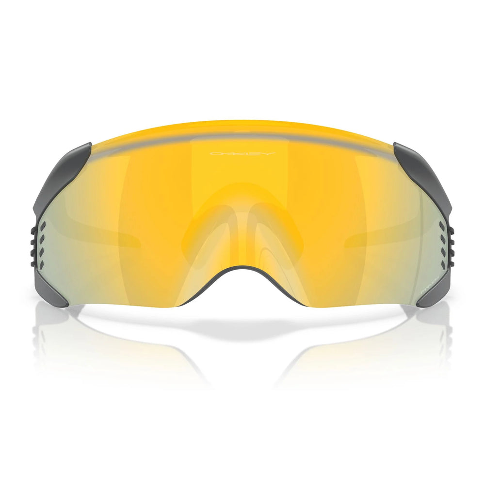 Built at the crossroads of aesthetic disruption and boundary-pushing performance, Velo Kato™ resists the conventional with a lens design enabled by PhysioMorphic™ Geometry for a close fit to the face. The large lens shape, Unobtainium® ligature nosepad, no-slip Unobtainium® earsocks and flow conditioner tabs on the frame create a sleek, aerodynamic no-hinge system that maximizes protection, airflow and field of view to keep you locked in at all times. For the complete ride, Velo Kato™ integrates seamlessly with the Oakley® Aero helmet. To experience enhanced color and contrast everywhere you go, Prizm™ Lens Technology provides the details. Read More