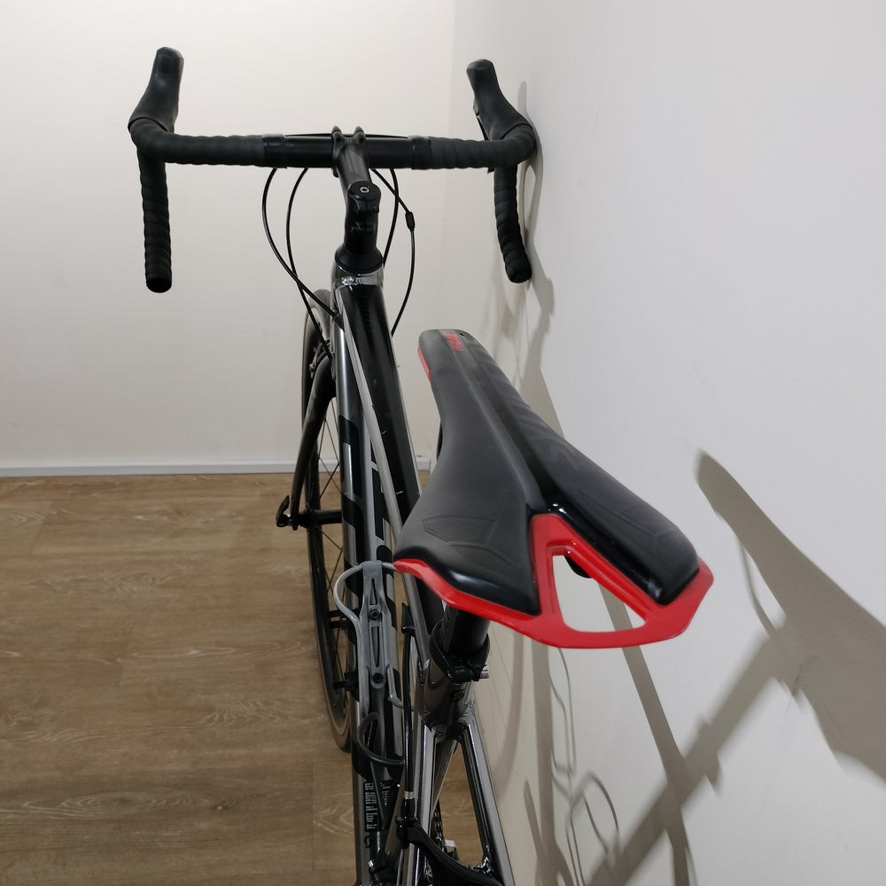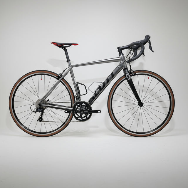 This Preloved Scott Speedster 30 Road Bike is rated 3 out of 5, indicating it is in good overall condition with moderate signs of use. The bike has been inspected and is fully functional, offering reliable performance on the road. There are some visible scratches on the fork and rear seat stay area, along with general cosmetic wear consistent with regular use. Despite these aesthetic imperfections, the bike remains mechanically sound and ready for many enjoyable rides.