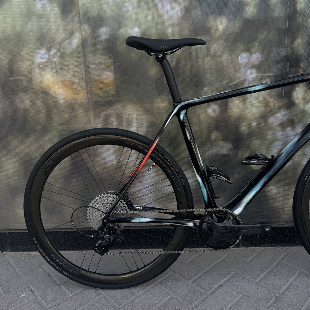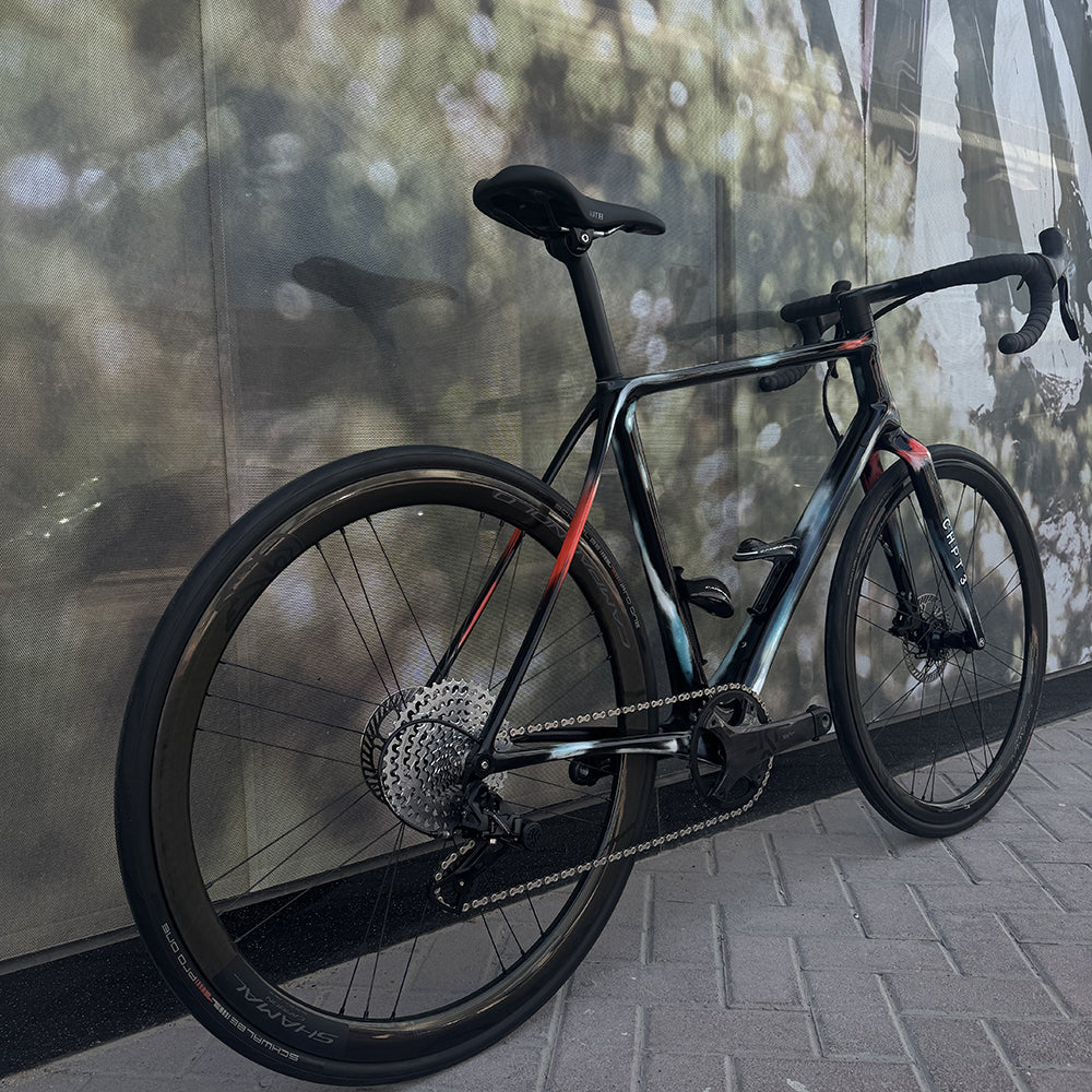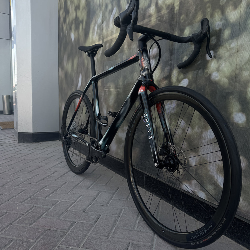 Paint but not as you know it. CHPT3 colors are sprayed layer by layer, sanded back and finished with a coat of carbon black paint by David Millar’s personal frame painter Eduard. Each an individual masterpiece.