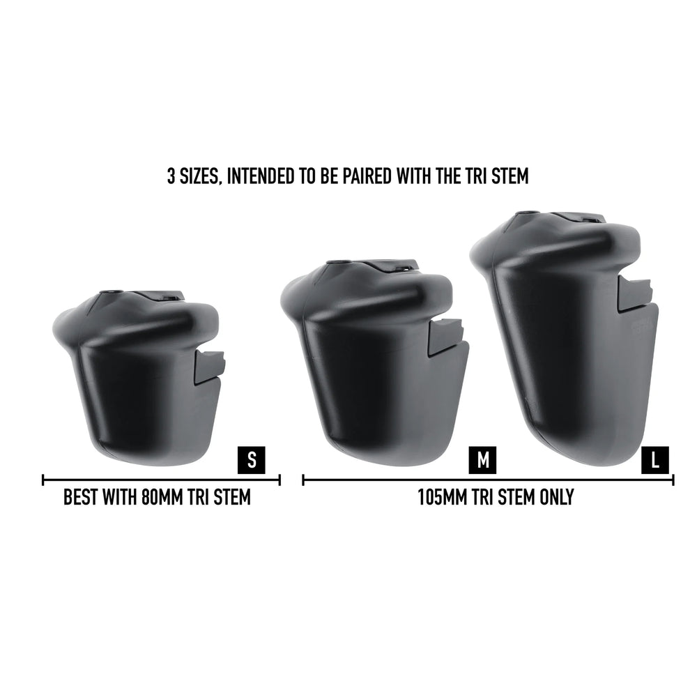The Aeroflow is available in 3 sizes, intended to be paired with the Tri Stem. The small bottle works best with the 80mm Tri Stem, but can be used with the 105mm. The medium and large bottles only work with the 105mm Tri Stem. In all cases an equivalent 1/Seventeen stem with HSF faceplate can also be used.