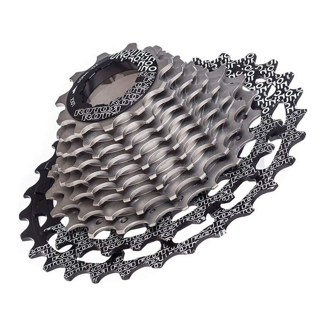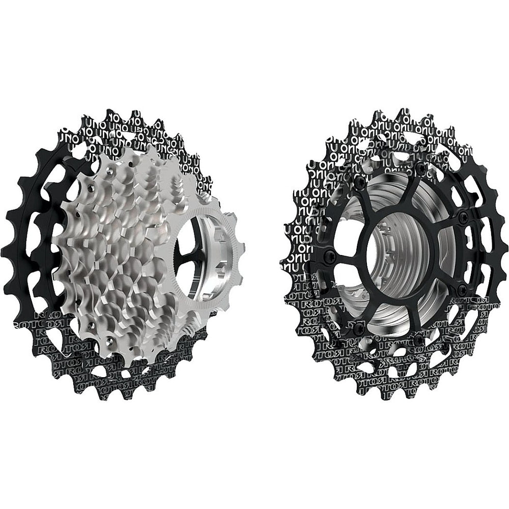 ROTOR expertise in drive train design is applied to the UNO cassette, resulting in a superlight and precise piece of art. The hollow design from high strength steel combined with 7075 heat treated alloy provides a stiff structure while keeps weight as low as possible. Gear steps are designed to always fit your perfect cadence. Surface coating reduces friction and increase durability.