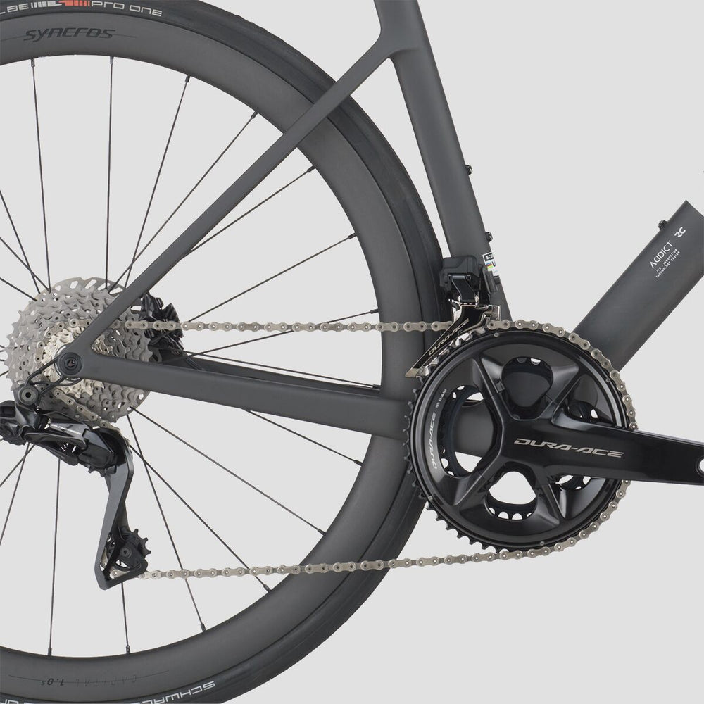 The new Addict RC's geometry has undergone a comprehensive redesign to align seamlessly with our modern specifications for this bike, accommodating wider tires while enhancing overall handling consistency across all sizes. Whether you're a professional rider or chasing after the local KOMs/QOMs on the weekends, the new Addict RC promises heightened agility and responsiveness, ensuring an unparalleled riding experience.
