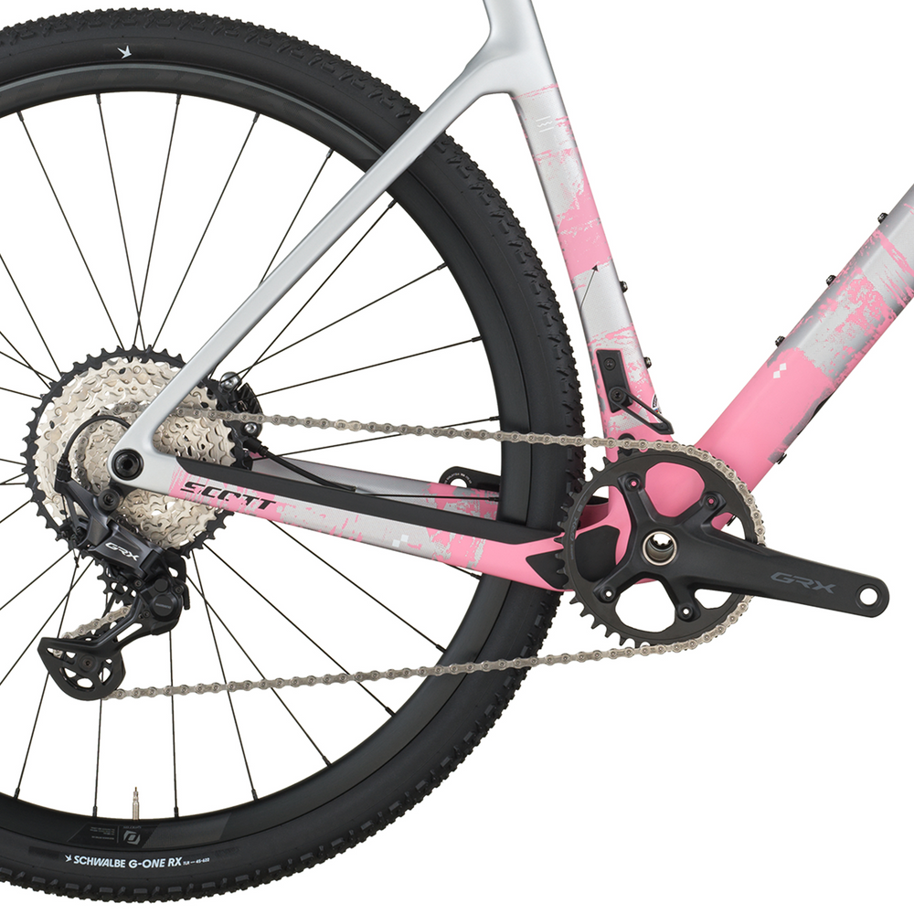 Aero Tube Shapes - Gravel and aero can also go hand in hand. SCOTT’s patented airfoil design has been applied to the bike's main tubes (down tube, head tube, seat tube, seat post, seat stays) with the goal of optimizing the airflow and reducing the overall drag, without any compromise on comfort and compliance.