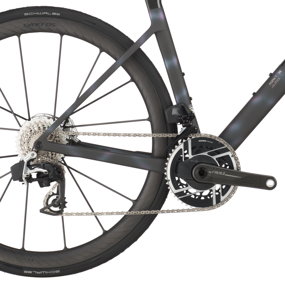 The new Addict RC's geometry has undergone a comprehensive redesign to align seamlessly with our modern specifications for this bike, accommodating wider tires while enhancing overall handling consistency across all sizes. Whether you're a professional rider or chasing after the local KOMs/QOMs on the weekends, the new Addict RC promises heightened agility and responsiveness, ensuring an unparalleled riding experience.