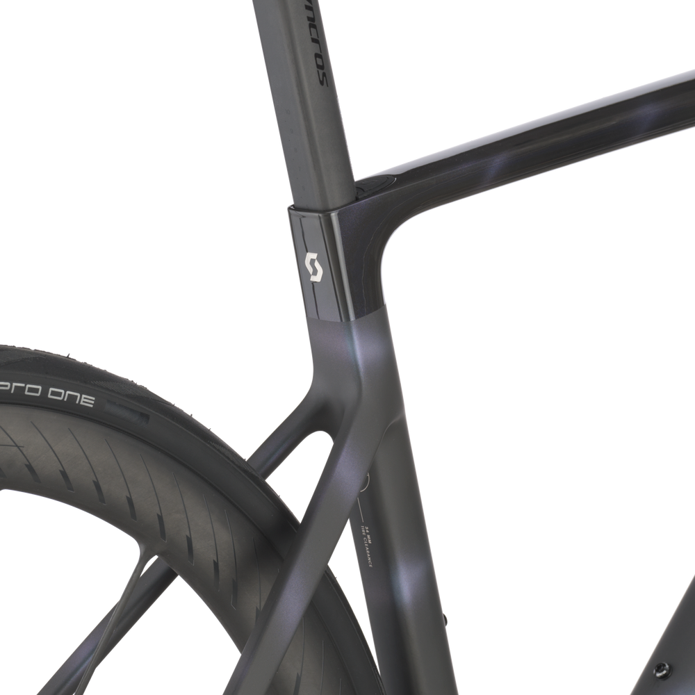 The integration of advanced molding technology and a redesigned seat post clamping system allows for thinner seat tube walls and reduced material usage in this key frame part. Paired with the new innovative Syncros SP-R101-CF seatpost, the lower thickness of the seat tube enhances flexibility and promotes added comfort during longer rides. Furthermore, the all-new Addict RC offers a generous 34mm tire clearance, ensuring enhanced comfort even on the most challenging terrain.