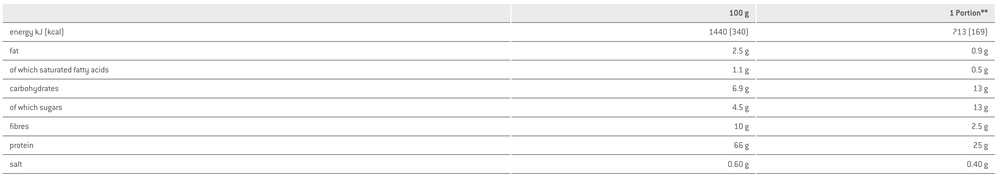 Tasty, high-quality protein shake based on milk protein, egg albumin and whey protein. Suitable as a protein and fibre-rich meal for a calorie-reduced diet, especially with a reduced proportion of carbohydrates (low carb). Ideal for supplementing and increasing the protein content of a meal in combination with salad, fruit and vegetables.