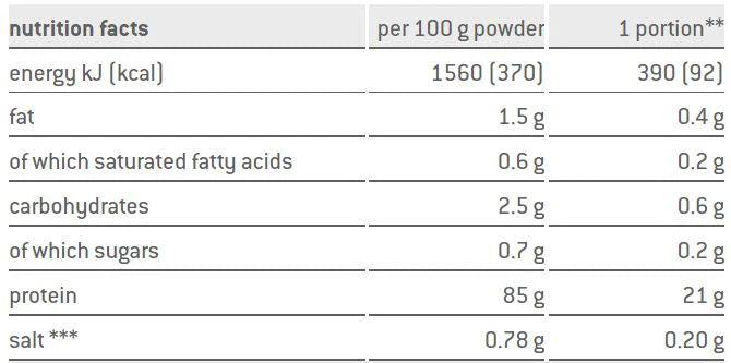 WHEY ISOLATE 94 is the "purest" of all protein products. The CFM production process gently removes lactose and fat. The result is a lactose-free, easily digestible whey protein powder with a very high protein content (90% in pure powder, 94% in dry matter). It also has a naturally high BCAA content of approx. 25%. The high quality protein supports both goals of muscle building as well as weight reduction. WHEY ISOLATE 94 is also suitable for active people and convalescents with an increased protein requirement as well as for recovery in endurance sports.