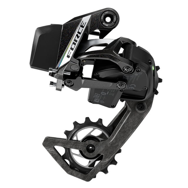 Lighter, faster and more capable than ever, the Force AXS rear derailleur does it all in style. Covering cassette ranges from 10-28T up to 10-36T, this wireless wonder has a new, lighter cage and a larger pulley wheel to increase drivetrain efficiency. One derailleur ready for 2x or 1x, the steepest climbs and descents, all while shedding 12g from previous generation Force.