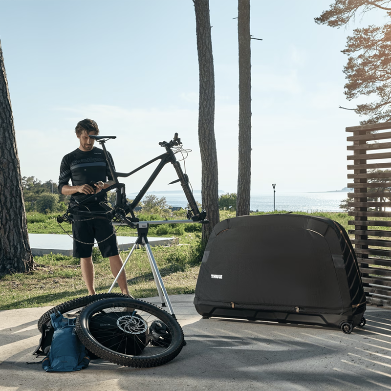 The safest and easiest way to travel with your mountain bike, with an integrated work stand for proper assembly and maintenance along the way.