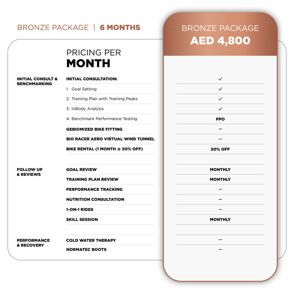 Our Bronze Package consists of many of the same High Performance perks as our Silver and Gold Packages but we tailor the Bronze Package to newer rider who may need a very different approach in their training.